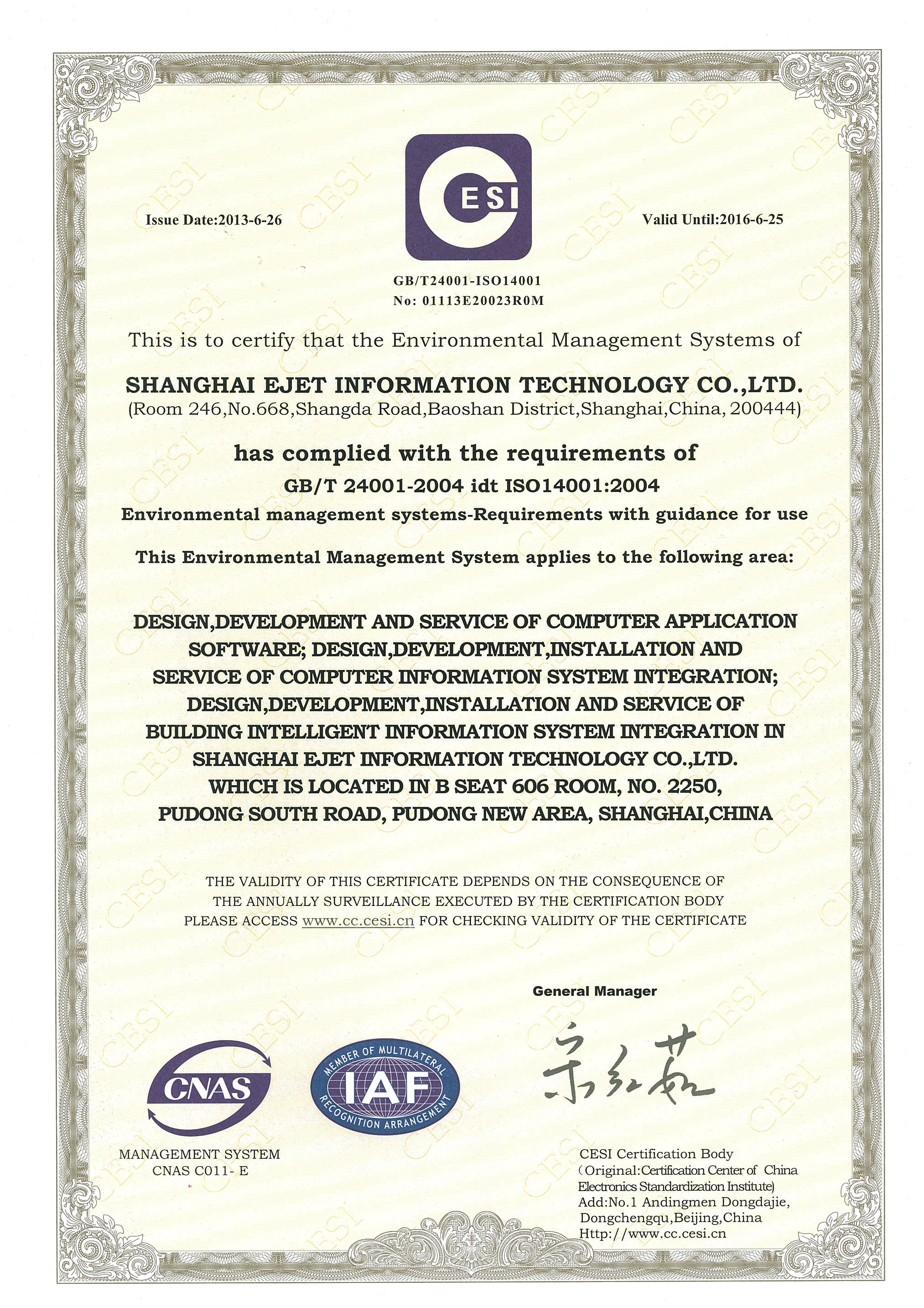 6月28日,我司順利獲得了ISO14001:2004環(huán)境管理體系證書。