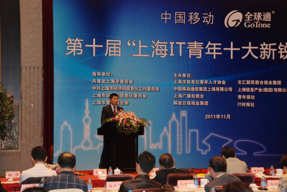 由上海市信息化青年人才協(xié)會、中國移動通信集團上海有限公司、上海廣播電視臺、解放日報報業(yè)集團、文匯新民聯(lián)合報業(yè)集團、上海信息產(chǎn)業(yè)(集團)有限公司、青年報社、IT時報社聯(lián)合主辦,共青團上海市委員會、中國上海市經(jīng)濟和信息化工作委員會、上海市經(jīng)濟和信息化委員會、上海市青年聯(lián)合會協(xié)辦的2011年度中國移動全球通”第十屆“上海IT青年十大新銳”評選活動,旨在為宣傳和表彰在信息化建設中取得突出業(yè)績、做出重要貢獻的優(yōu)秀青年,樹立上海IT青年的典范,激勵本市廣大青年學習成才、艱苦創(chuàng)業(yè)、無私奉獻、開拓進取。